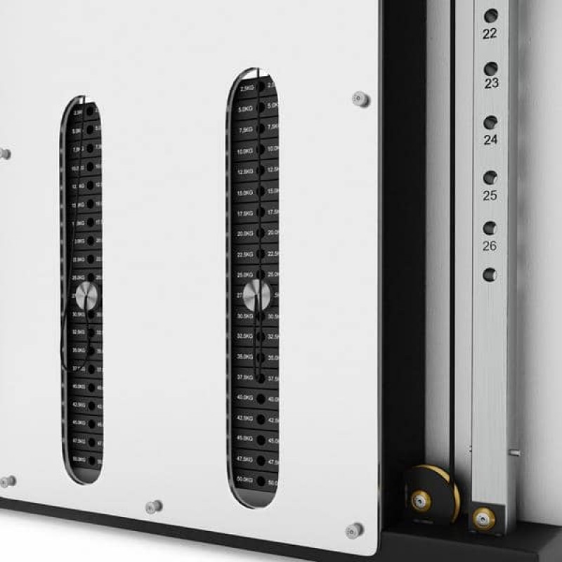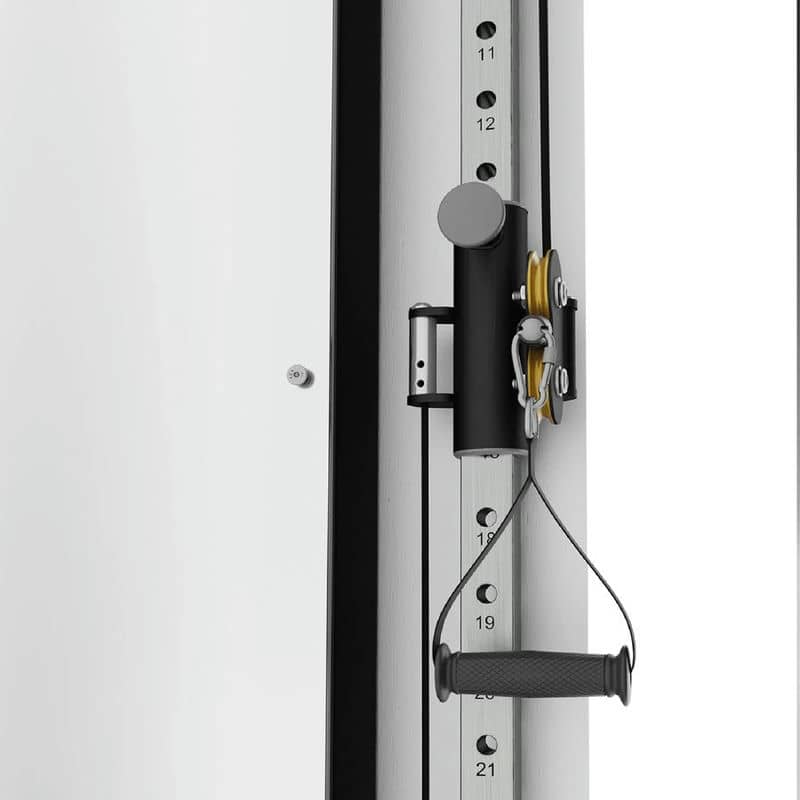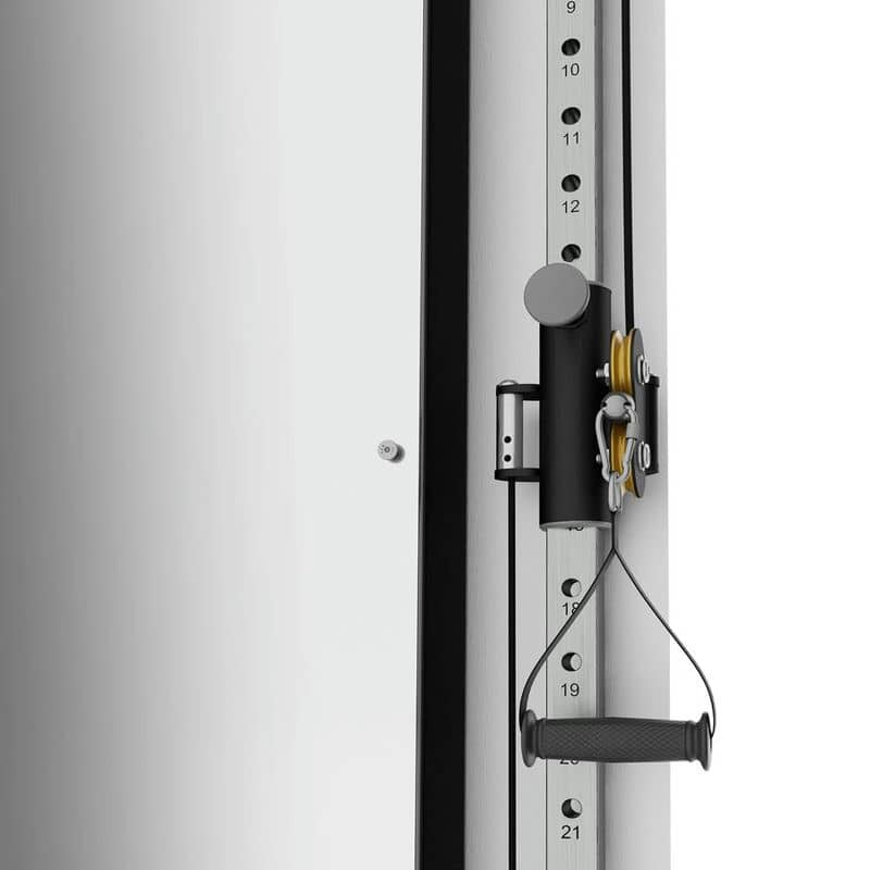 Кросовер оснащений 26-позиційним регулюванням висоти сталевого троса, тому ви можете регулювати як кут, так і діапазон руху відповідно до вашої форми тіла та вподобань. Троси міцні та плавно ковзають для тихого та безпечного тренування. Ручки закріплені на карабінах, тому ви можете змінювати їх за бажанням. Вони зручні та ергономічні, запобігають ковзанню та натиранню рук.