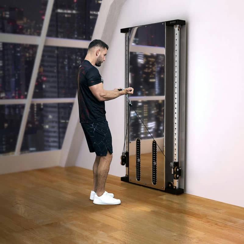 BS302 має сучасний та елегантний дизайн, який зробить вашу кімнату професійною та стильною. Кросовер виготовлений з високоякісних матеріалів, міцних та стійких до пошкоджень і корозії. Конструкція стійка, тому тренування з великими навантаженнями не будуть проблемою. Тренажер оснащений акриловим дзеркалом на передній частині, яке, крім своєї візуальної цінності, є легким, безпечним та стійким до осколків.
