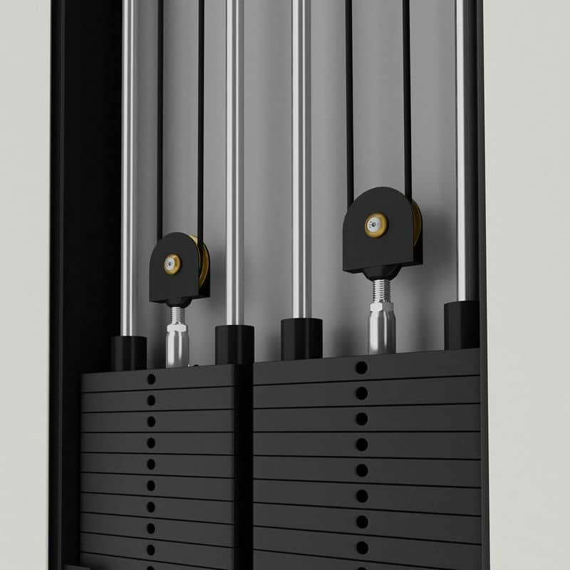 BS302 має два незалежних стека по 50 кг кожен, які можна регулювати вручну відповідно до вашого рівня фізичної підготовки та тренувальних цілей. Кожен стек з’єднаний з подвійним підйомником, який дозволяє виконувати вправи для верхньої та нижньої частини тіла. Ви можете тренувати обидві руки та ноги одночасно або чергувати їх, підвищуючи ефективність та інтенсивність тренування.
