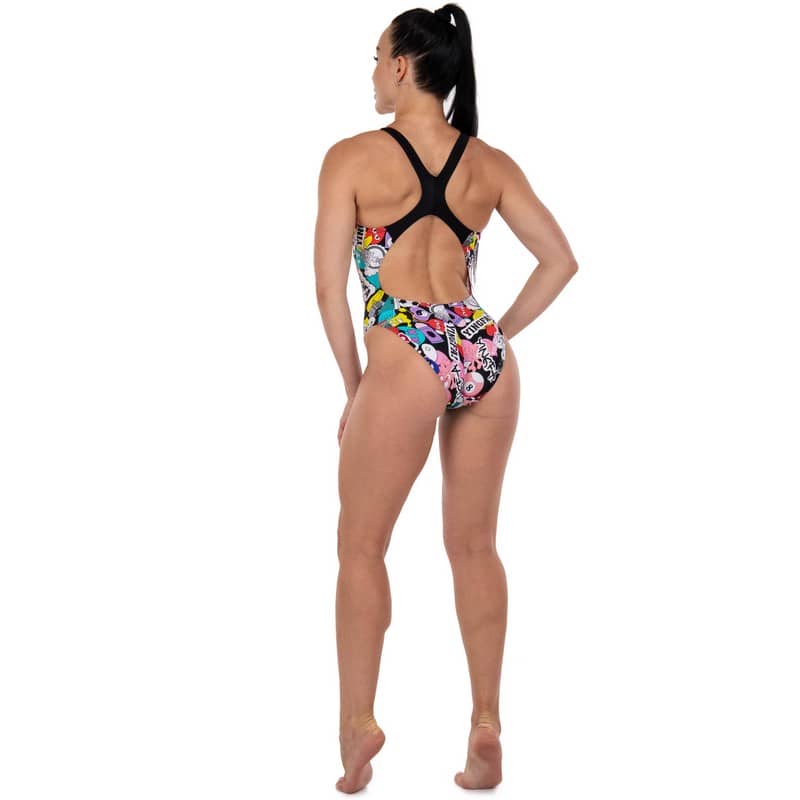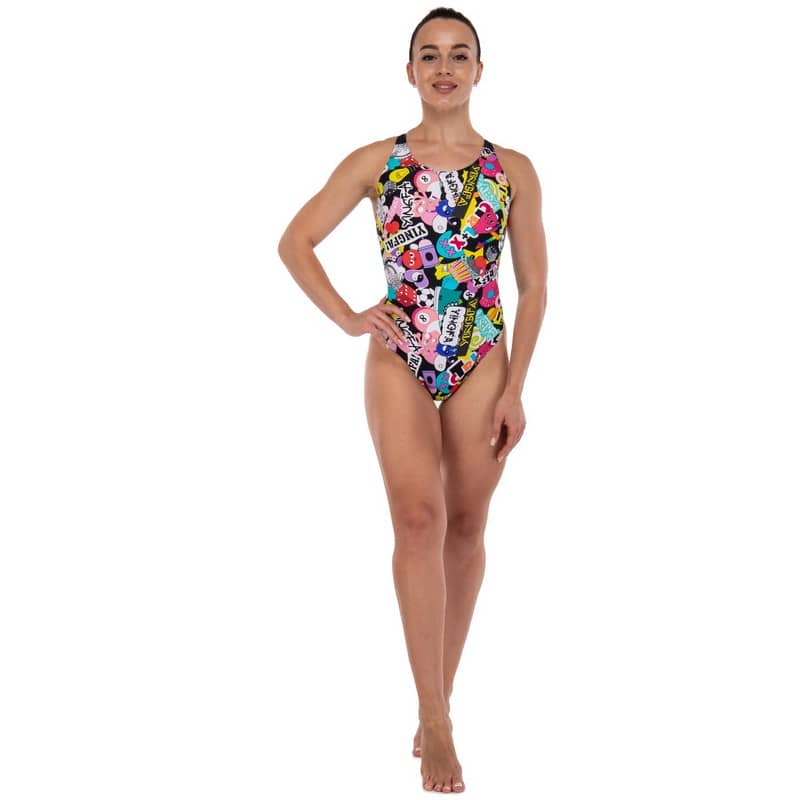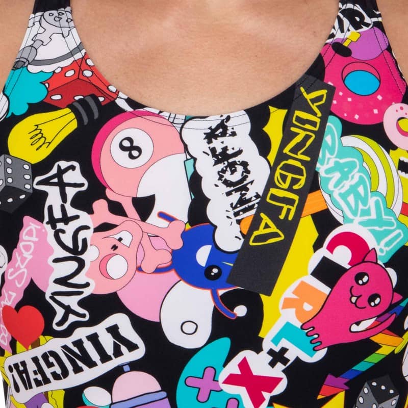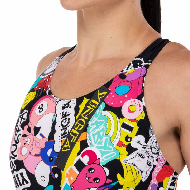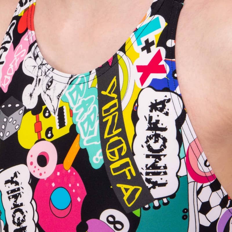Купальник для плавання суцільний жіночий Yingfa S, чорний-блакитний-рожевий, код: Y-713_SBKNP