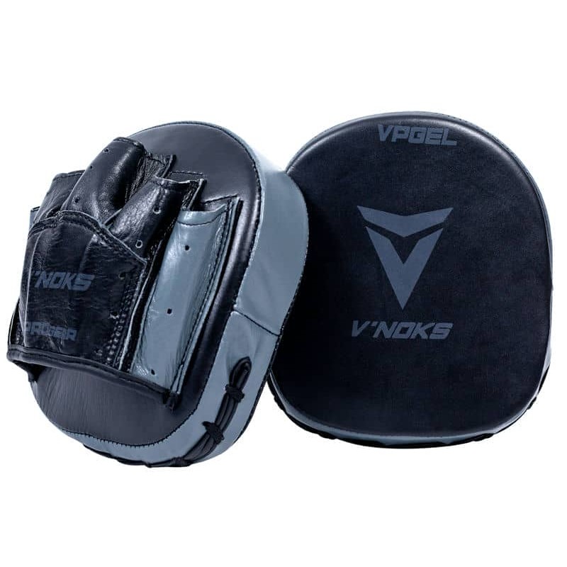 Лапи щільно та комфортно сідають на руці за рахунок шкіряної «кишені» для рук: відсіки для кожного пальця прострочені окремо та передбачена перфорація для доступу повітря. Виконані лапи у стильному дизайні: поєднання чорної та сірої шкіри, а також сірий логотип вже стали візитною карткою серії Boxing Machine від V`Noks.