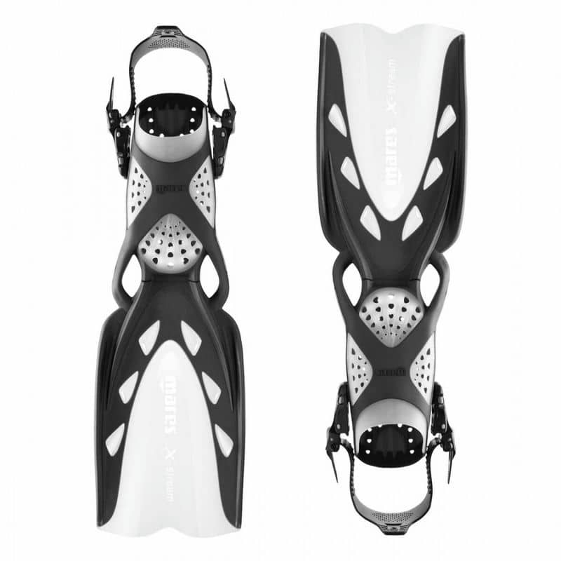 X - stream змінювалися, удосконалилися і оптимізувалися на кожному етапі досліджень, результатом яких стала висока продуктивність і полегшена конструкція моделі. X - Stream будується з трьох різних матеріалів, кожен з яких має свою місію. Жорстка чорна гума застосована в конструкції бічних ребер, м'яка використовується на галоші і на каналі Superchannel посередині лопаті. Перфорована вставка між галошею і лопаттю знижує опір і усуває ефект засмоктування лопаттю зайвої маси води.