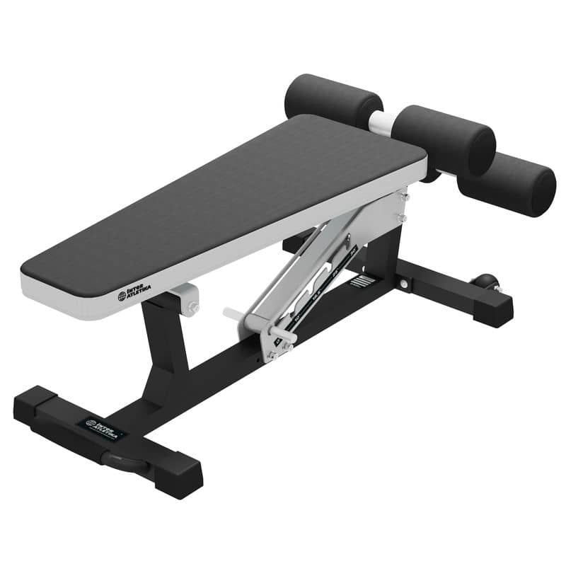 Лава для пресу регульована InterAtletika LC311 - універсальний тренажер, який користується популярністю у будь-якому спортивному залі. Регулярні вправи на цьому снаряді дозволяють підтягнути живіт і зробити його рельєф атлетичним. На лаві для пресу виконується підйом тулуба вгору. Для цього ноги фіксуються за допомогою м'яких валиків тренажера, руки з'єднані в замок і знаходяться за головою.