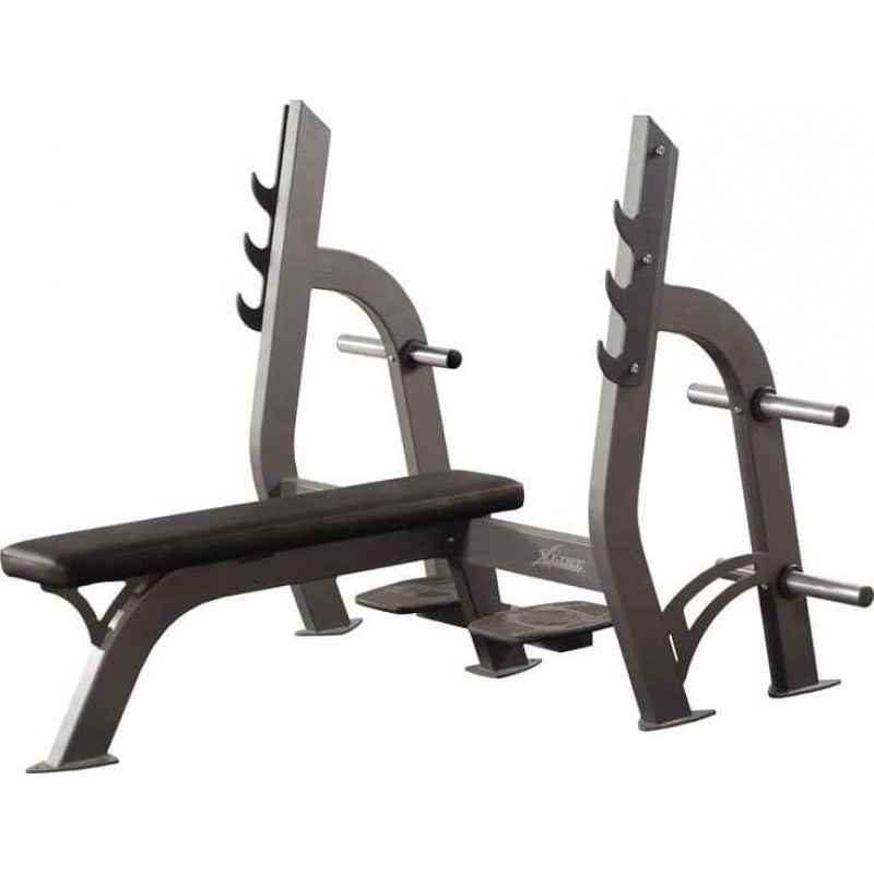 Для використання вдома або в спортивних залах відмінно підійде лава зі стійкою Xline X304. Спортивне обладнання призначене для вправ зі штангою. Конструкція має амортизуючі подпятники, які не вимагають кріплення до підлоги і усувають ковзання.
