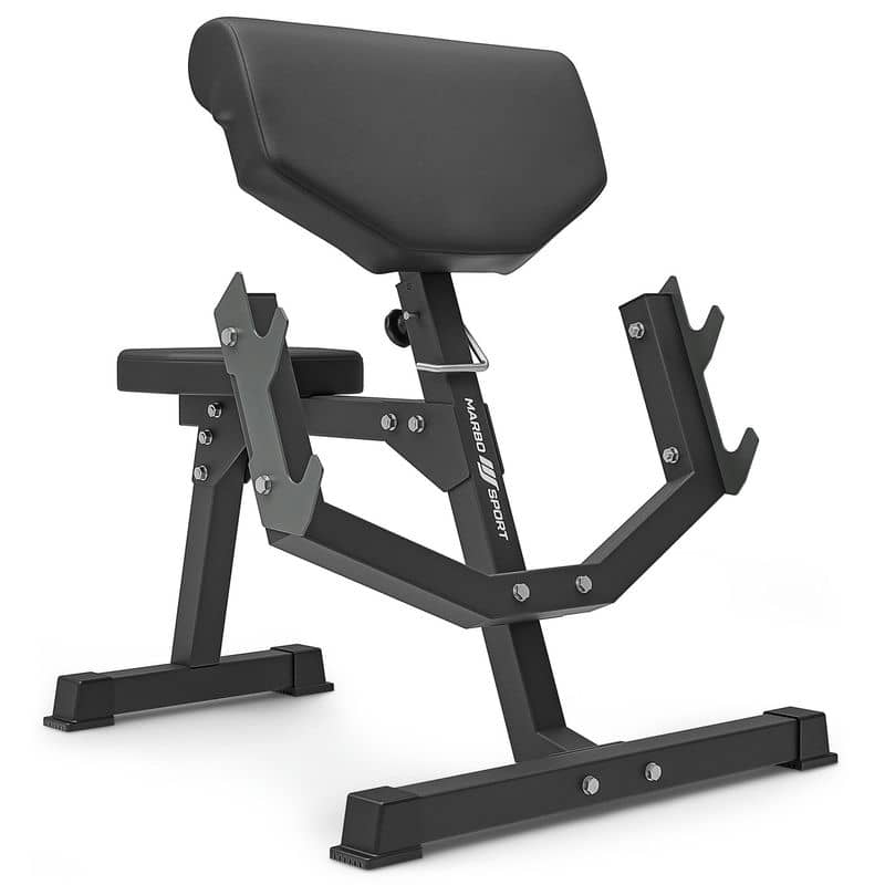 Лава Скотта Marbo Sport MS-L107 дозволяє виконувати вправи у сидячому положенні, при цьому ваші руки спираються на спинку пристрою. Це рішення забезпечує повний діапазон руху під час тренування та максимальну м'язову напругу, що призводить до їхнього швидкого зростання.