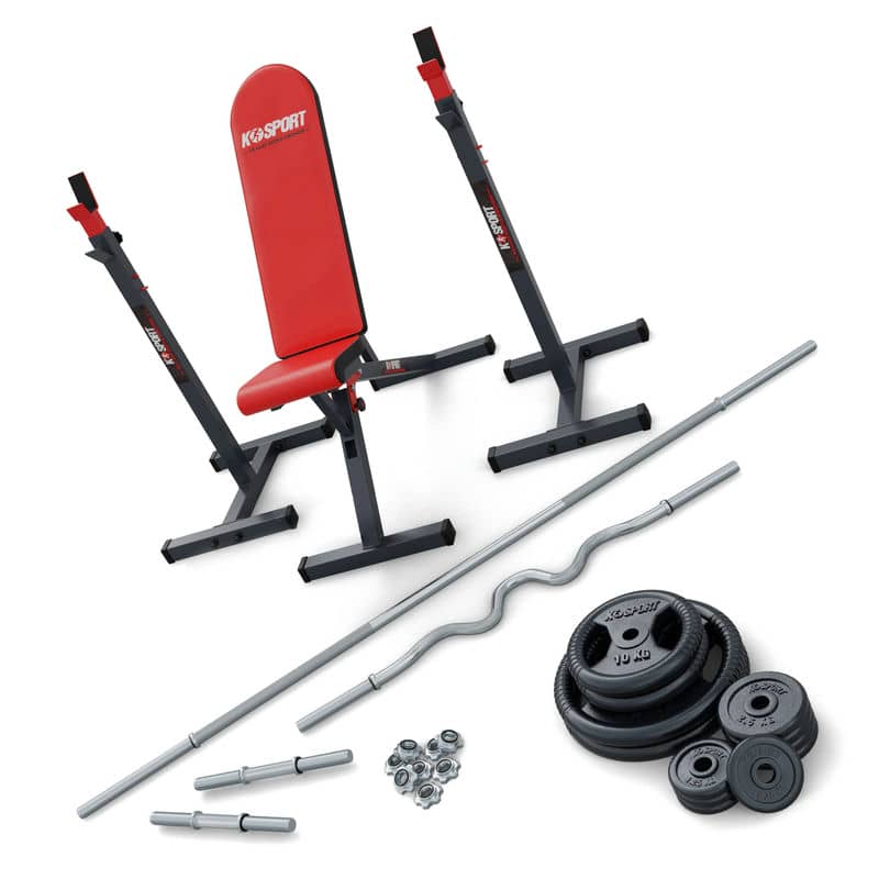 Лавка + стійки для пресса + набір штанги + гирі 95 кг KSSL099 K-Sport, код: KS-324-IN