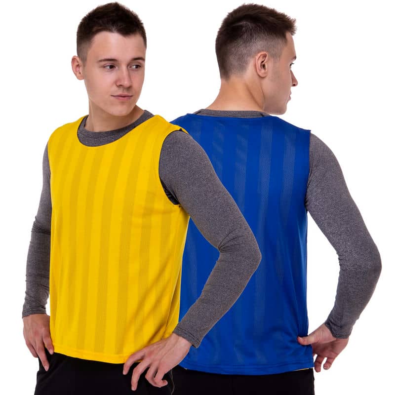 Манишка для футболу двостороння чоловіча цільна (сітка) PlayGame, синій-жовтий, код: CO-0791_BLY
