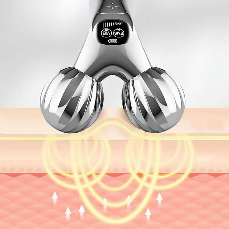 Масло, крем або будь-який інший косметичний засіб необхідно нанести на шкіру і ретельно розтерти руками. Увімкніть пристрій, натиснувши кнопку внизу. Обидві функції встановлені на найнижчий рівень. Натискаючи кнопки +/-, можна налаштувати інтенсивність. Якщо ви хочете використовувати лише одну з функцій, натисніть кнопку «M» кілька разів, виберіть EMS або VIB, а потім відрегулюйте інтенсивність.