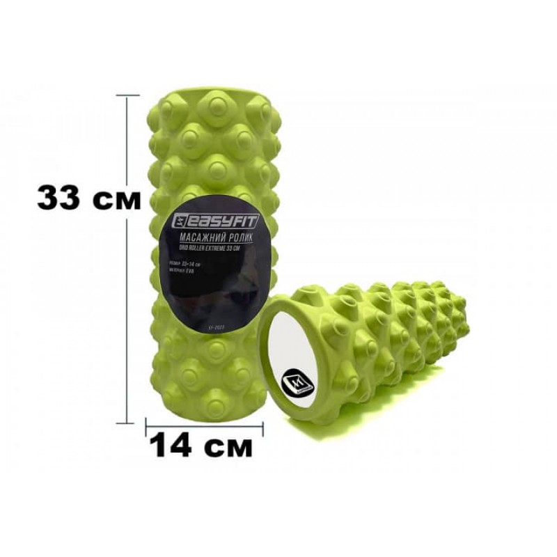 Масажні ролери EasyFit Extreme 33x14 см дозволяють розслабити м'язи після тренування, зняти розтягненню та релаксації м'язів, їх швидшому відновленню. Зовнішній шар ролика виготовлений з EVA-піни із спеціальною тривимірною поверхнею, яка створює різні за глибиною залучення м'язових тканин види впливу. Ці дії аналогічні масажу руками у професійного масажиста, але з більшою інтенсивністю, яка задається комплексом вправ і вагою спортсмена. Тривимірна поверхня масажного ролика Grid Roller також стимулює приплив крові до м'язів, а разом з нею кисню і поживних речовин, забезпечуючи якнайшвидше відновлення м'язів і їх зростання. фітнес, пілатес та йога, а також для реабілітації. Популярність ролерів у професіоналів пояснюється їх простотою у використанні та ефективності – немає потреби в частих візитах до масажиста. Натомість компактний за своїми розмірами валик завжди може бути під рукою, а щоб приступити до занять, знадобиться зовсім невелика ділянка вільного простору.