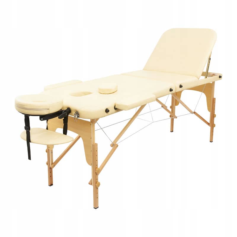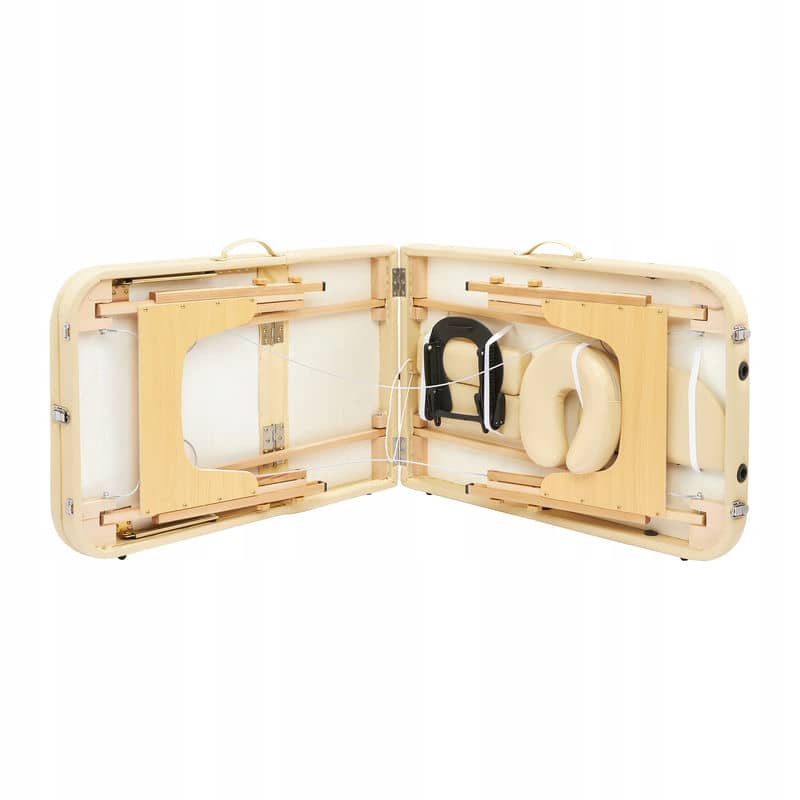 Масажний стіл від 4Fizjo сконструйований так, що всі елементи фіксуються нерухомо при складанні та поміщаються всередину транспортної сумки, що йде в комплекті. Каркас столу виконаний з деревини, завдяки чому він міцний та стійкий. Для додаткової безпеки конструкція столу підсилена стальними тросами, що утримують його від вібрації в розкладеному стані. Сегменти масажного столу покриті приємною на дотик екошкірою та наповнені м'якою піною, що адаптується до вигинів тіла. Борти закруглені для більшого комфорту використання. Стіл оснащений регульованими підлокітниками та полицею на якій також можна розмістити руки або використовувати її, як підставку для телефону. Профільований підголівник адаптується до форми обличчя та голови, тому не здавлює ніжні лицьові нерви. Виріб має безліч регулювань, включно з рухомою секцією для ніг, що дозволить ще точніше адаптувати його до ваших потреб.