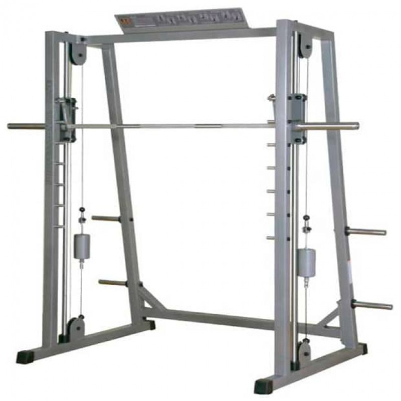Профіль несучої конструкції 60х60х3 (мм). Тренажер покритий порошковою фарбою. Для приведення в рух вантажів використовується трос 5 мм в ПВХ покритті, із зусиллям на розрив 500 кг з макс. навантаженням 800 кг. Тренажер оснащений пам'яткою технічного обслуговування, шістьма накопичувачами для дисків, амортизаційними підп'ятниками, що не вимагають кріплення до підлоги.