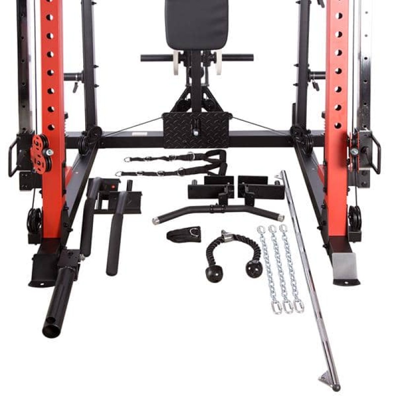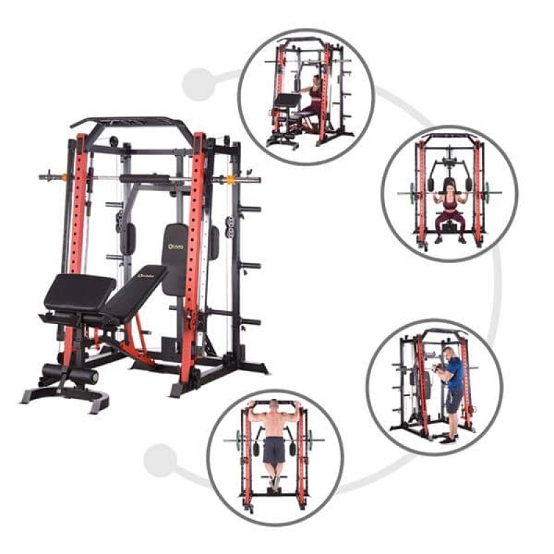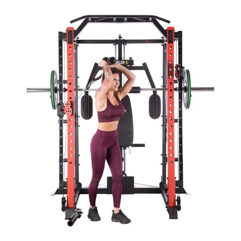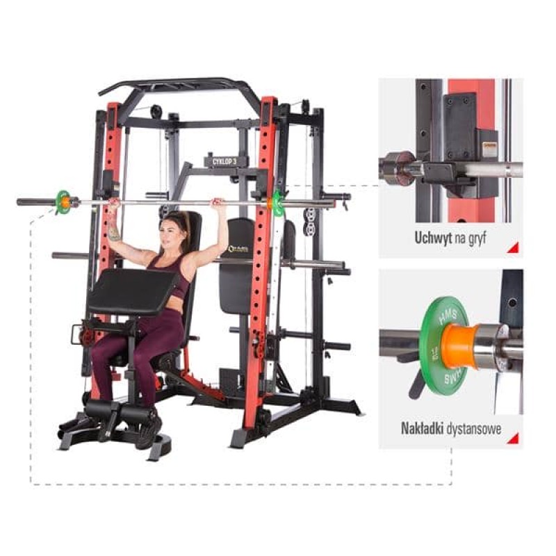 CYKLOP3 – це не просто мостовий кран. Це комбінація мостового крана, штанги для підтягувань, батерфляя, стійки для штанги та двох регульованих по висоті шківів. У комплект з CYKLOP3 також входить лава з можливістю регулювання кута нахилу спинки і сидіння, проповідник з тримачем для штанги. Поєднуючи всі елементи разом, ми отримуємо універсальне обладнання, яке дозволяє виконувати вправи для всіх груп м’язів. Ефективність тренувань і їх можливості підвищаться завдяки аксесуарам, що входять в набір, таким як рукоятки для блоків, навісні штанги або тримач для штанги.