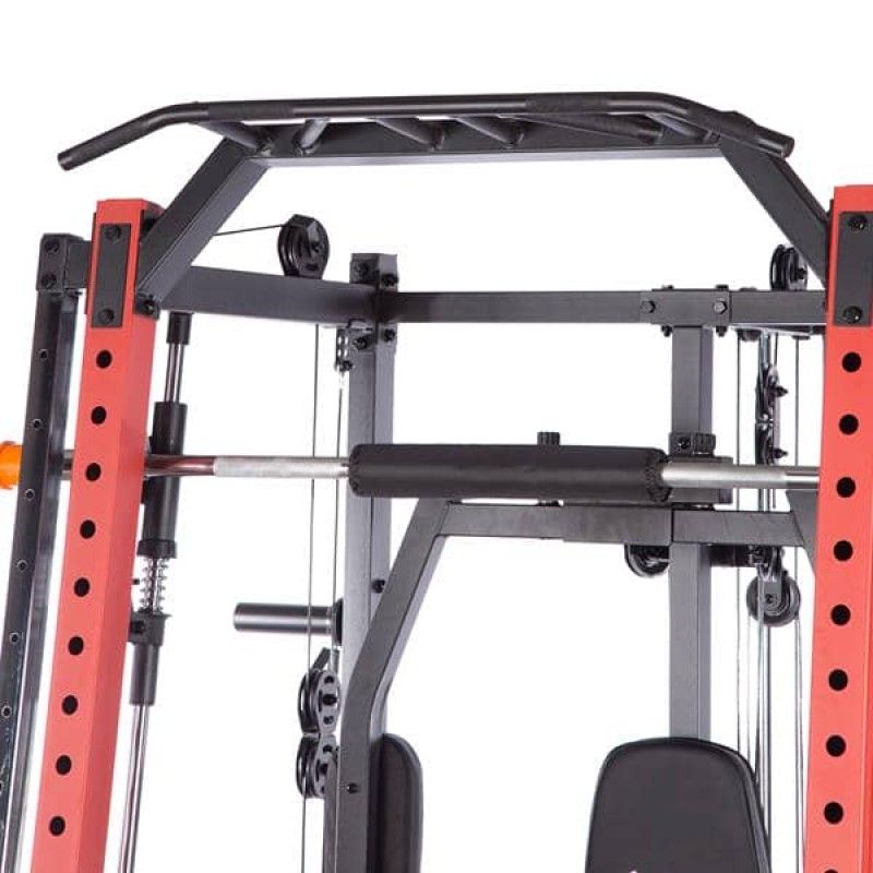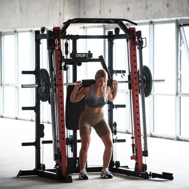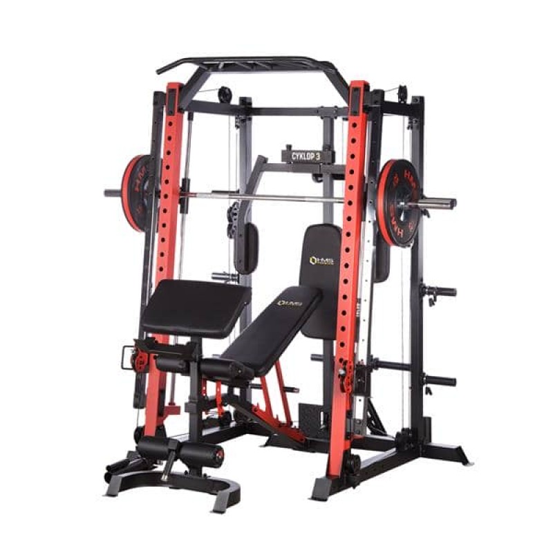 Гарне тренування – це не тільки міцне, але й зручне обладнання. CYKLOP3 має багато зручностей для тренажера, включаючи: лаву з регульованими налаштуваннями, швидке та просте регулювання висоти підйому та легку фіксацію балки мостового крана. До штанги крана прикріплена спеціальна губка, яка захищає тренажера, наприклад, при виконанні присідань. Ручки штанги для підтягувань мають рифлені для кращого захоплення. М'яка спинка лави і батерфляй дозволять займатися тривалий час, не відчуваючи дискомфорту. Для зберігання вагових табличок користувач має в своєму розпорядженні функціонально розміщені стійки, а для безпеки кожна стійка оснащена пружинним затискачем.