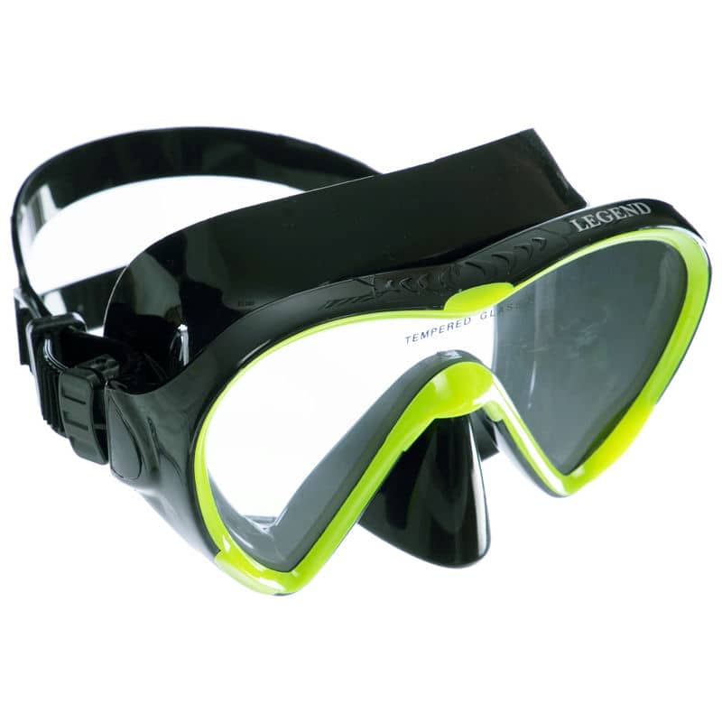 Маска для плавання Legend в пластиковому боксі, чорний-лимонний, код: M148-SIL_BKY