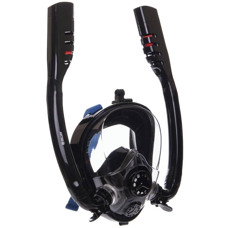 Головна технічна особливість маски - подвійна дихальна трубка. Така конструкція забезпечує більш природне дихання та легкий приплив повітря. А вбудована система Dry Top захищає трубки від попадання води під час пірнання або під час хвиль. Навіть якщо трохи рідини все ж таки потрапило всередину, досить легкого видиху, щоб вона вийшла через вбудований дренажний клапан — швидко та без зусиль.