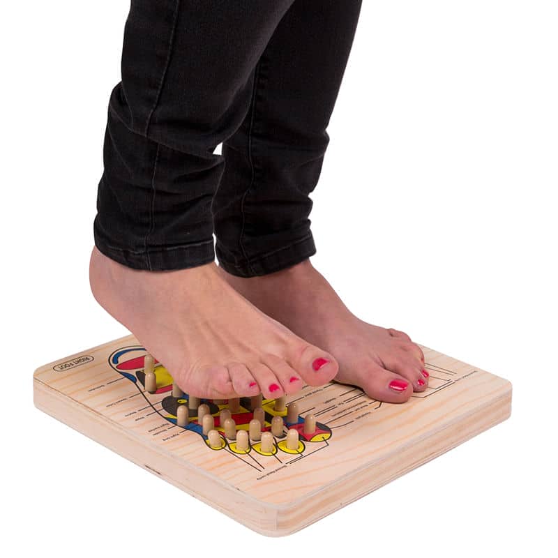 Масажер для ніг inSPORTline Ashiqua призначений для масажу точок точкового масажу, розташованих на підошвах ніг. Почати найкраще з масажу ніг легкими круговими рухами, можливо, з певним приємним тиском, бажано сидячи. Таким чином, ми обираємо оптимальну силу тиску масажних вкладки на стопу. Більш просунутий масаж передбачає покладання цілих ніг на тарілку і ходьбу від п’яти до носка. Якщо дотик до випинань здається занадто сильним, можна надіти шкарпетки, але найкраще масажувати босу ногу. Масаж підтримує імунну систему та кровообіг, активізує нервові закінчення та зони, що сприятливо впливають на нормальну роботу відповідних органів. Точки точкового масажу зазначені безпосередньо на табличці, див. Інструкції для пояснень. 3 спеціальні точки точкового масажу оснащені магнітами, які позитивно впливають на збалансований потік енергії та покращують кровообіг, завдяки чому клітини отримують необхідні поживні речовини та кисень.