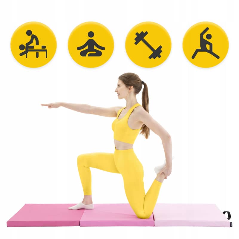 Гімнастичний мат від 4Fizjo складається з трьох з'єднаних елементів. Це дозволяє в будь-який момент компактно зібрати його до розміру 60 x 60 x 15 см й таким чином економити простір при зберіганні і транспортуванні аксесуару. Також мат обладнаний зручними ручками для відмінної мобільності. Для виготовлення виробу використовуються високоякісні матеріали, що є гарантією безпеки кожного тренування. Завдяки щільному, але водночас м'якому наповнювачу з пінополіетилену (EPE), досягається відмінний рівень комфорту. У свою чергу, верхній шар виконаний з матеріалу ПВХ, що має низьку схильність до деформації. Це дає відчуття стійкості при заняттях, а поверхня мату легка у догляді, її можна чистити та обробляти дезінфікуючими засобами. Верхній чохол має вбудовану блискавку, це полегшує процес чищення мату, а також дає змогу пересвідчитись у якості наповнювача.