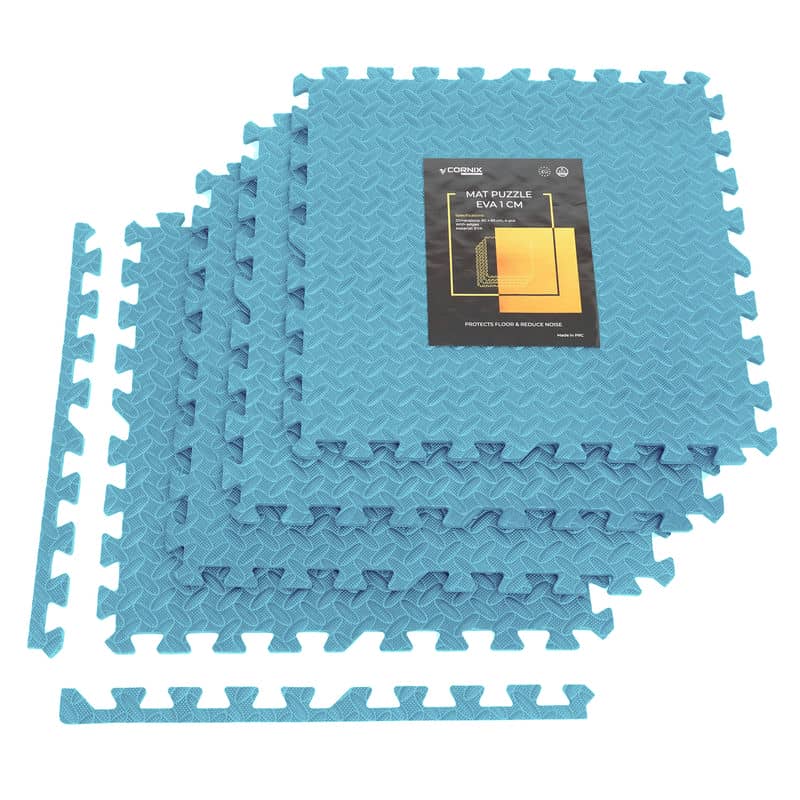 Мат-пазл Cornix виготовлений з високоякісного піноматеріалу EVA. Він м'який, але водночас щільний, з гарною амортизацією. Складається з 4 частин і в розкладеному вигляді його розмір становить 120 х 120 см. Великою перевагою є те, що кілька комплектів можна з'єднати між собою і легко покрити необхідну площу. Складання дуже просте - елементи фіксуються за допомогою замків особливої ​​форми та без додаткових механізмів. Покриття добре тримається разом та не роз'єднується під час тренування. Поверхня мату водонепроникна, а також дуже легко миється.
