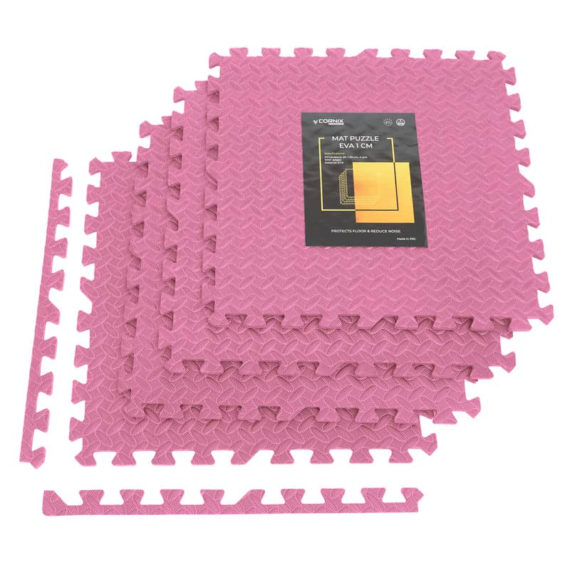 Мат-пазл Cornix виготовлений з високоякісного піноматеріалу EVA. Він м'який, але водночас щільний, з гарною амортизацією. Складається з 4 частин і в розкладеному вигляді його розмір становить 120 х 120 см. Великою перевагою є те, що кілька комплектів можна з'єднати між собою і легко покрити необхідну площу. Складання дуже просте - елементи фіксуються за допомогою замків особливої форми та без додаткових механізмів. Покриття добре тримається разом та не роз'єднується під час тренування. Поверхня мату водонепроникна, а також дуже легко миється.