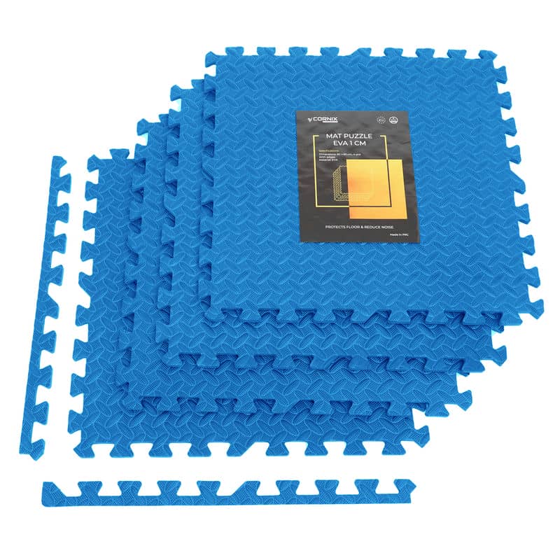 Мат-пазл Cornix виготовлений з високоякісного піноматеріалу EVA. Він м'який, але водночас щільний, з гарною амортизацією. Складається з 4 частин і в розкладеному вигляді його розмір становить 120 х 120 см. Великою перевагою є те, що кілька комплектів можна з'єднати між собою і легко покрити необхідну площу. Складання дуже просте - елементи фіксуються за допомогою замків особливої форми та без додаткових механізмів. Покриття добре тримається разом та не роз'єднується під час тренування. Поверхня мату водонепроникна, а також дуже легко миється.