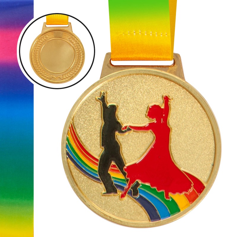 Медаль спортивна зі стрічкою кольорова PlayGame Танці d-65 мм золота, код: C-0339_G