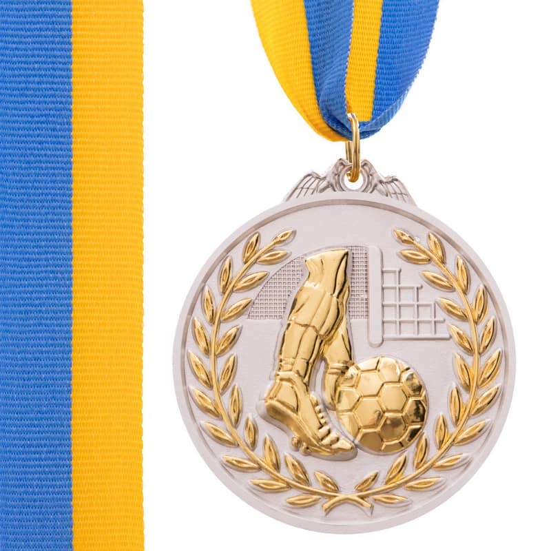 Медаль спортивна зі стрічкою PlayGame Футбол срібна, код: C-7030_S
