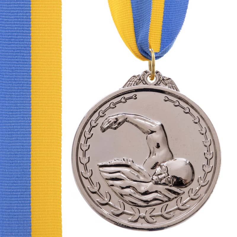 Медаль спортивна зі стрічкою PlayGame Плавання срібна, код: C-7015_S