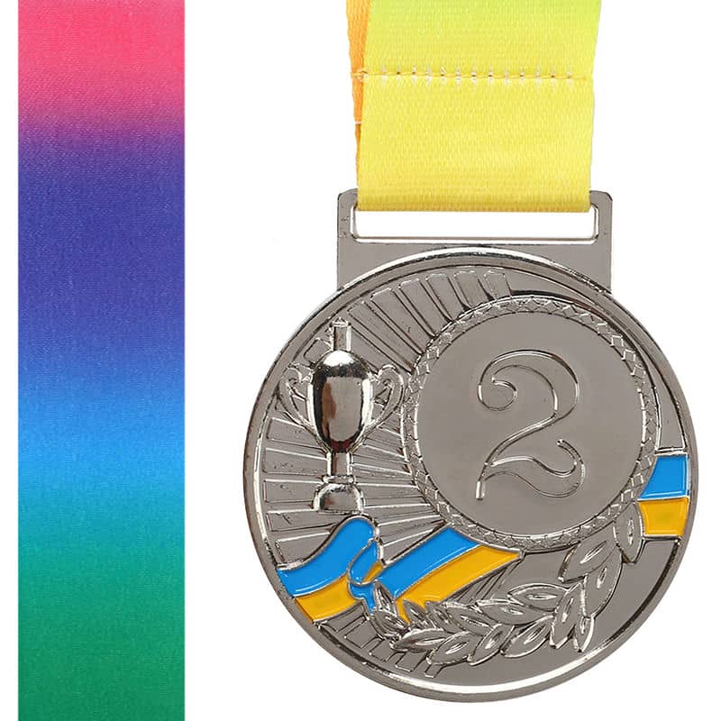 Медаль спортивна зі стрічкою PlayGame Ukraine срібло, код: C-6210_S