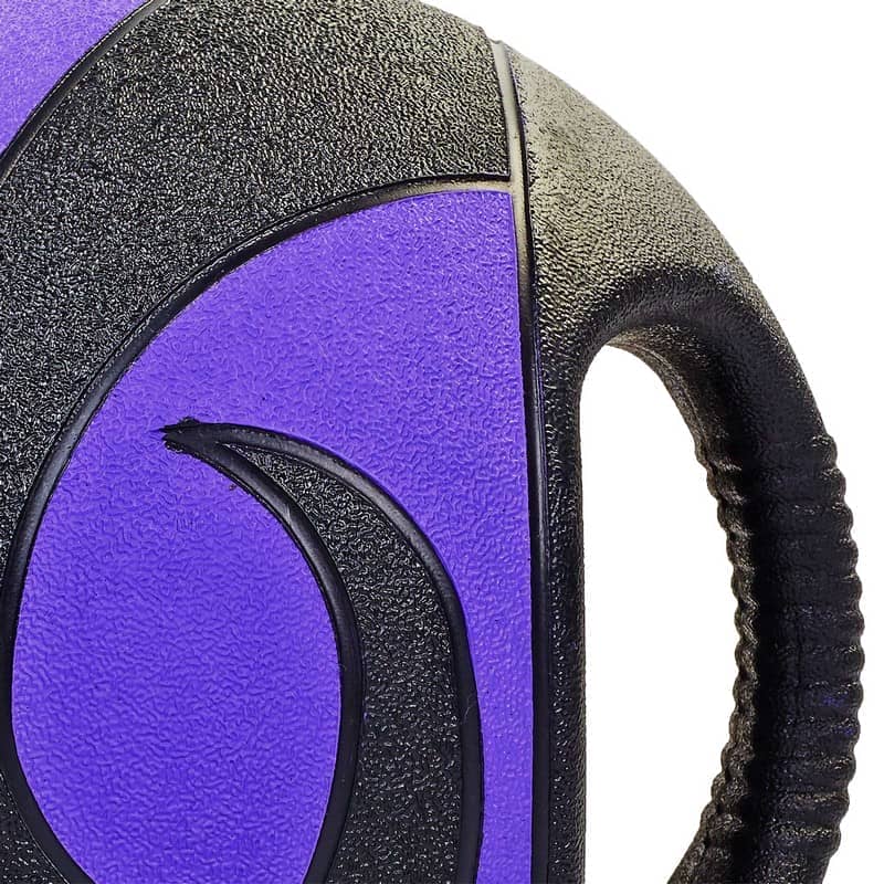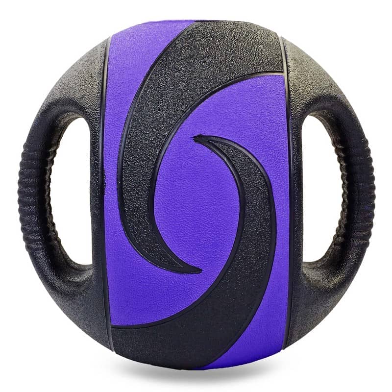 Особливістю цього медбола є наявність ручок, які дають змогу зробити захоплення зручнішим і простішим. Це може стати в нагоді в процесі реабілітації, коли м'язи руки ще слабкі й не готові утримувати снаряд такої ваги. Як матеріал наповнювача, який надає основну масу спортивному снаряду, використовується також гума. І матеріал наповнювача, і матеріал зовнішньої оболонки невразливі перед впливом вологи і стійкі до перепадів температур. Це дає змогу використовувати м'яч як на вулиці, так і в приміщенні.