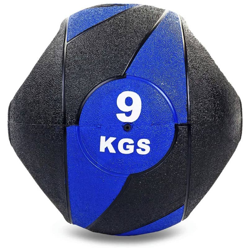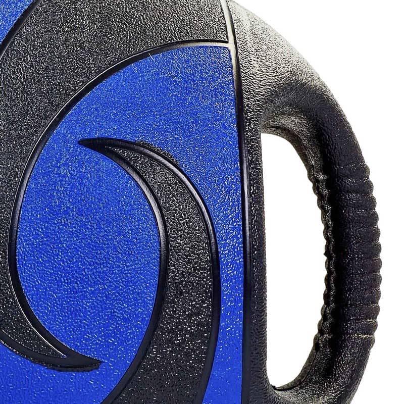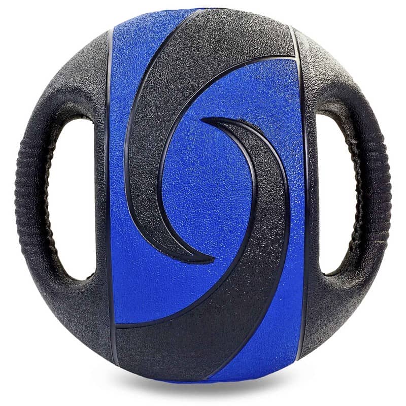Обираючи медичний м'яч із дворучним дизайном, ви забезпечуєте собі комфорт під час тренувань. На відміну від класичних моделей, цей варіант медичного м'яча легше утримувати, що спрощує як реабілітацію, так і повсякденні заняття спортом. На покришці м'яча, виготовленої з гуми, є маркування, де вказано вагу снаряда в кілограмах. Усередині м'яча міститься наповнювач, який надає йому маси. Як матеріал наповнювача використана гума. Стійкий до тертя, механічних пошкоджень і впливу вологи матеріал покришки дає змогу використовувати м'яч у будь-яких умовах і за будь-яких температур.