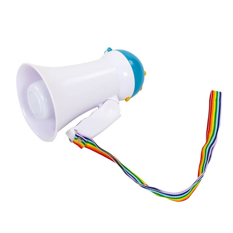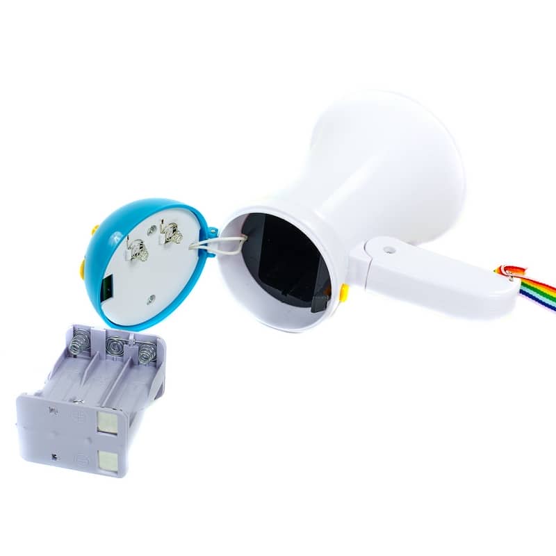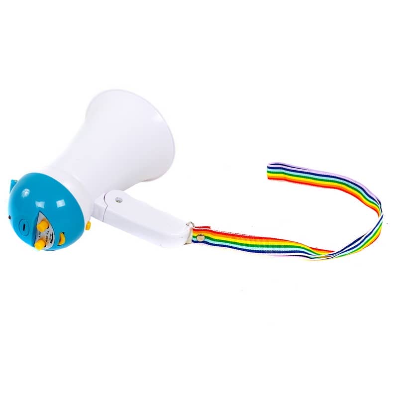 Наявність ремінця додає зручності: ви можете носити мегафон на плечі, звільнивши руки, і бути готовими використовувати його в будь-який момент. Особливо варто відзначити широку ремінну стрічку з яскравим райдужним забарвленням — вона не лише робить пристрій стильним, а й підвищує його видимість, що важливо під час роботи у натовпі чи на відкритому просторі.