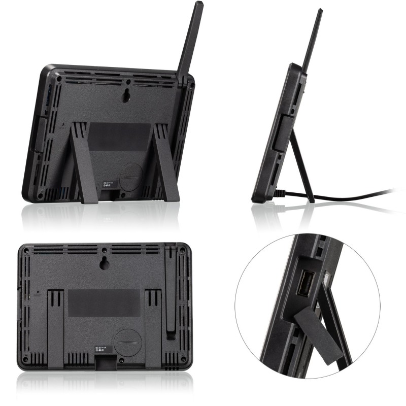 - Додатково: З'єднання через WIFI Підсвічування дисплея Програмовані звукові сигнали Сонячна панель живлення блока датчиків Календар Індикатор рівня сигналу від блоку датчиків