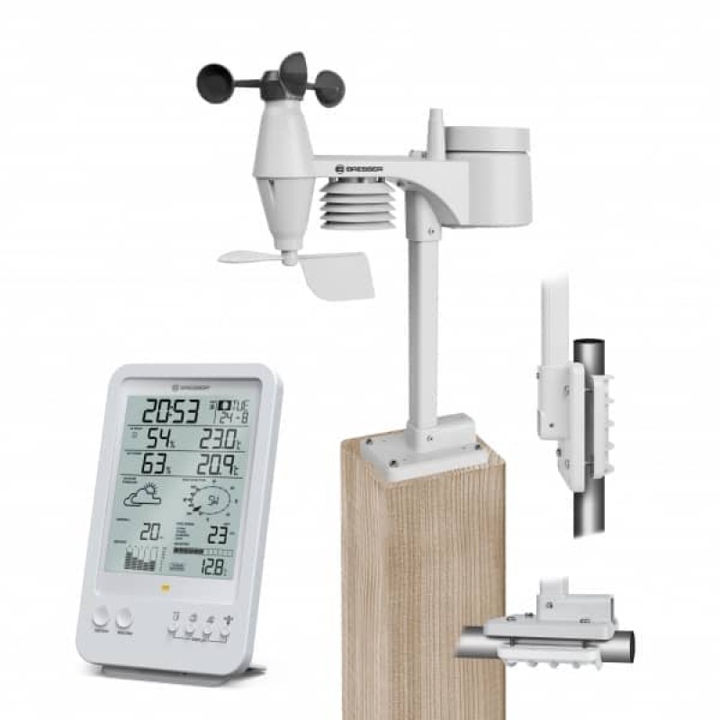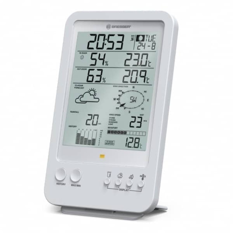 Метеостанція Bresser Weather Center 5-in-1 забезпечує вимірювання таких метеопараметров як величина атмосферного тиску, швидкість і напрям вітру, рівень, опадів, температура і відносна вологість повітря. Вбудована функція тривожних сповіщень попередить вас про вихід Реальні показники можуть відрізнятися за вказані межі. Всі датчики скомпоновані в єдиному блоці, що значно спрощує і прискорює процес установки і монтажу. Сучасний лаконічний дизайн і найширший спектр функцій дозволить з рівним успіхом використовувати цю метеостанцію як в квартирі, так і на присадибних ділянках.