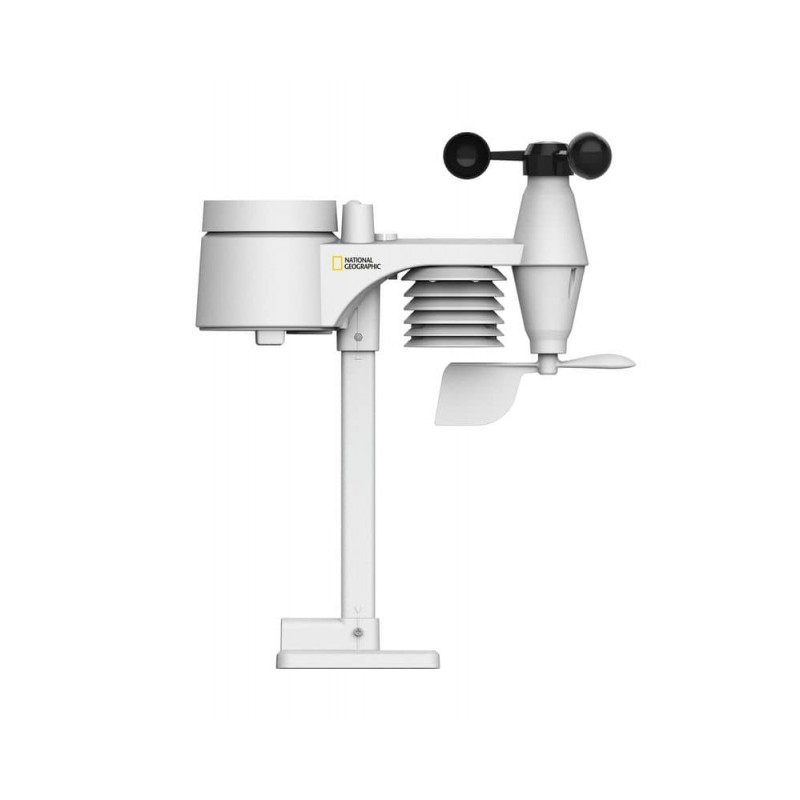 Сучасна метеостанція з кольоровим дисплеєм і прогнозом погоди Метеостанція National Geographic WIFI Colour Weather Center 7-in-1 Sensor (9080600) забезпечує вимірювання таких важливих метеопараметрів як величина атмосферного тиску, прогноз погоди, швидкість та напрям вітру, рівень опадів, рівень комфорту в приміщенні, інтенсивність випромінювання ультрафіолетових променів (UV), інтенсивність світла, температура та відносна вологість повітря. Функціонал станції дозволяє через WIFI обмінюватись даними на порталах: Weather Сloud, Weather Underground, онлайн переглядати дані на смартфоні, планшеті чи комп'ютері. Можлива синхронізація з платформою погодних даних AWEKAS через Wi-F, з якої також можливо отримати дані про погоду по всьому світi. Вбудована функція тривожних сповіщень попередить вас про вихід вимірюваних параметрів за вказані межі. Усі датчики скомпоновані в єдиному блоці, що значно спрощує та прискорює процес встановлення та монтажу, в комплекті додатковий безпроводний датчик температури і вологи. Сучасний лаконічний дизайн та широкий спектр функцій дозволить з рівним успіхом використовувати цю метеостанцію як у квартирі, так і на присадибних ділянках.