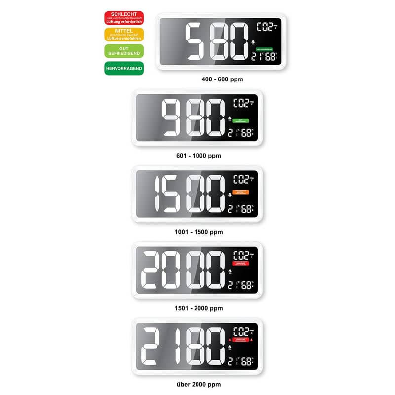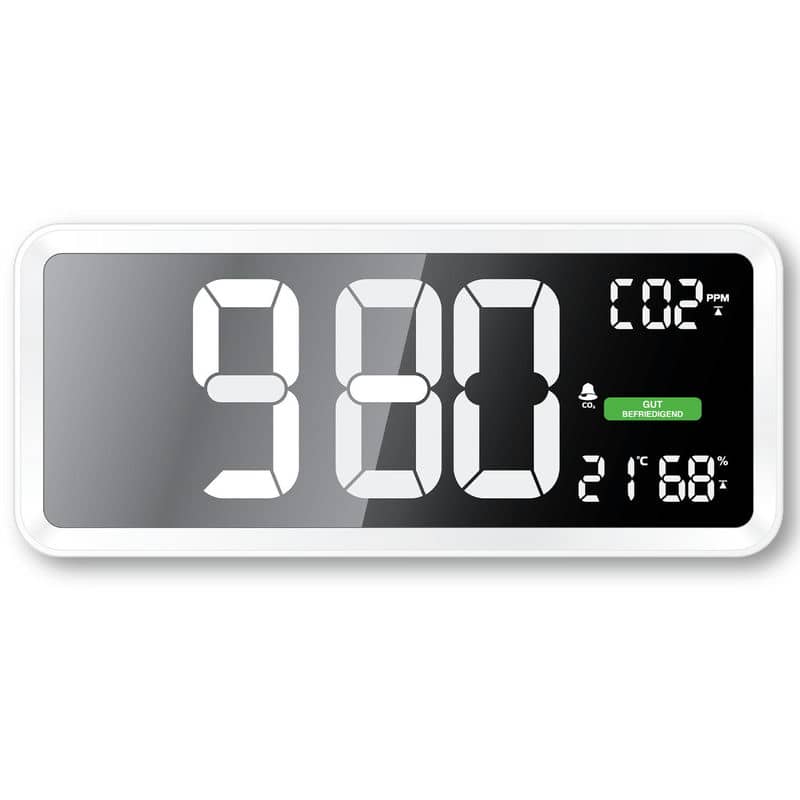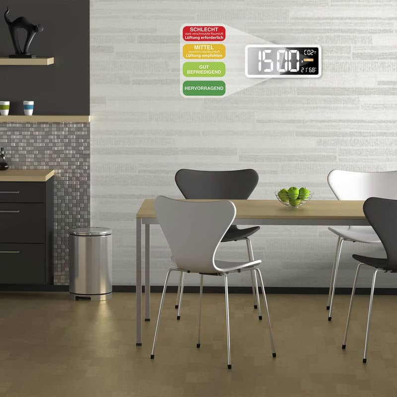 Високий рівень CO2 у повітрі знижує здатність концентруватися, працювати і навіть відновлювати сили. Це особливо важливо у місцях із великою кількістю людей, такі як офіс, спортзала чи вітальня, де збирається вся сім'я. Метеостанція Technoline WL1040 попередить про зниження якості повітря в приміщенні за допомогою кольорових позначок на екрані, або звукового сигналу. Цей пристрій може контролювати рівень вологості, відображати поточну температуру і час. Завдяки великому екрану, показники видно з далеку, а звуковий сигнал своєчасно повідомить про погіршення якості повітря і необхідність вентиляції.