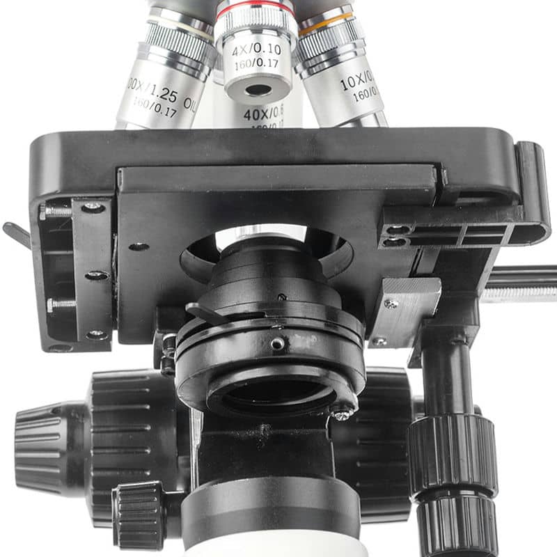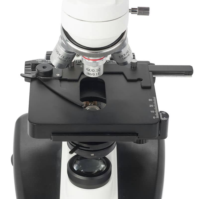 - Об'єктиви: ахроматичні 4x, 10x, 40x(s), 100x(s, oil)