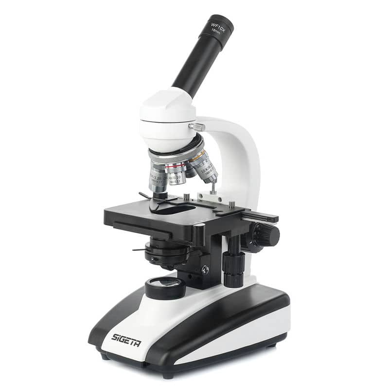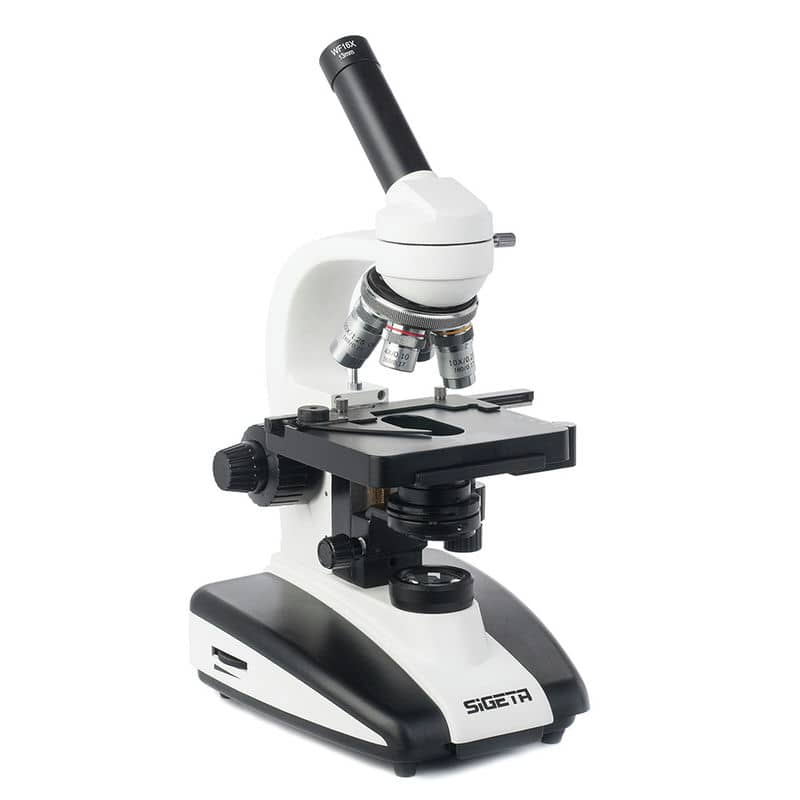 Sigeta MB-103 40x-1600x LED Mono - лабораторний монокулярний мікроскоп з ахроматичною оптикою для дослідження біологічних препаратів у світлі. Призначений для обладнання навчальних, медичних та наукових установ будь-якого рівня; генерує якісне зображення на малих (від 40х) та великих (до 1600х) збільшеннях.