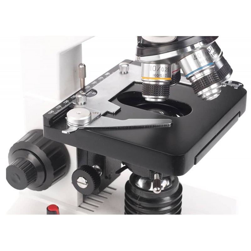- Об'єктиви: ахроматичні 4x, 10x, 40x(s), 100x(s, oil)