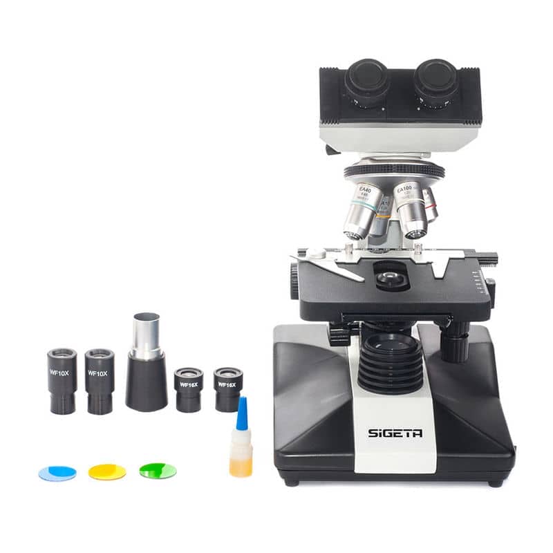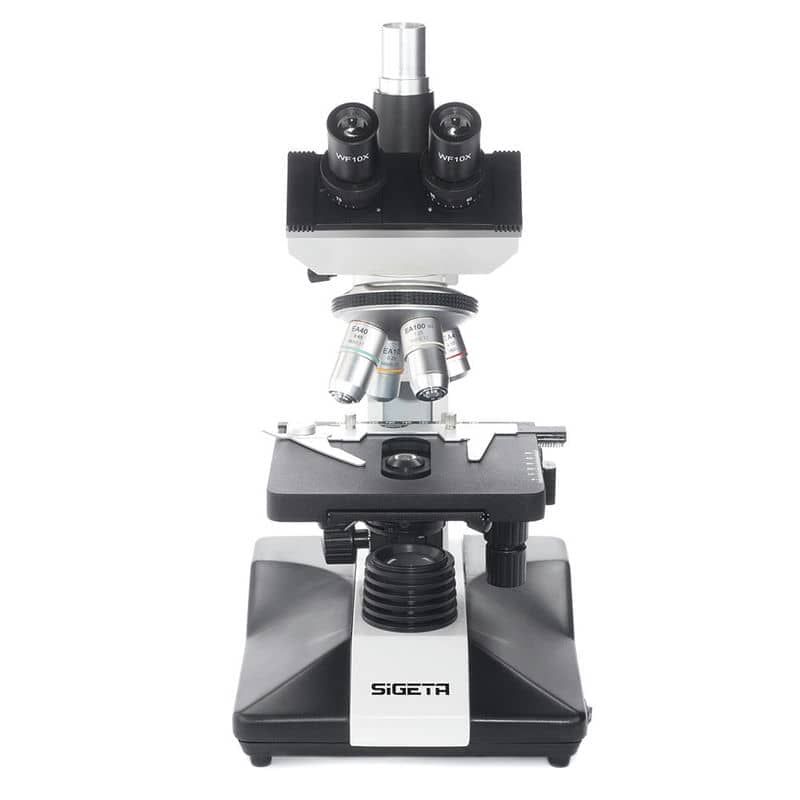 Sigeta MB-303 40x-1600x LED Trino - універсальний світловий мікроскоп із тринокулярною насадкою. Призначений для гістологічних, бактеріологічних та цитологічних досліджень біоматеріалу, що дозволяє можливість встановлення камери для фотофіксації лабораторних експериментів. Оптична система мікроскопа формує яскраву, повнокольорову та деталізовану картинку, тому цю модель доцільно застосовувати і в освітніх цілях.