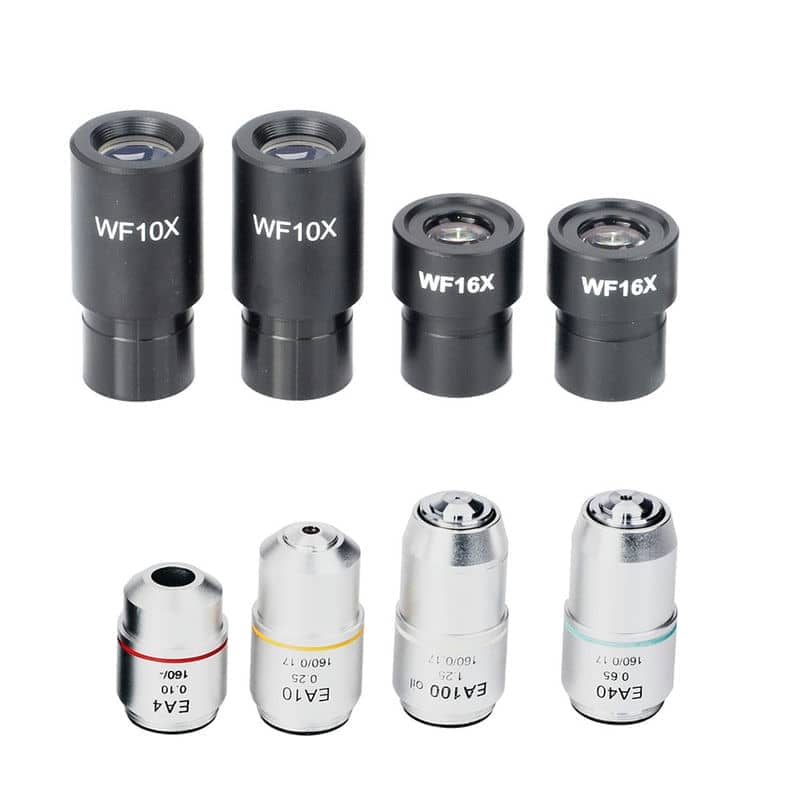 - Об'єктиви: ахроматичні 4x, 10x, 40x(s), 100x(s, oil)