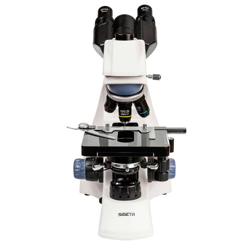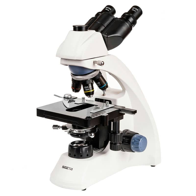 Sigeta MB-304 40x-1600x LED Trino — біологічний тринокулярний мікроскоп з ахроматичною оптикою для проведення лабораторних досліджень у світлі, що проходить. Мікроскоп підійде як для навчання, так і для практичного застосування: дослідження біологічних рідин, зразків рослинних та тваринних тканин, вивчення гістологічних препаратів та цитологічних проб, проведення основних бактеріологічних та мікрологічних досліджень.