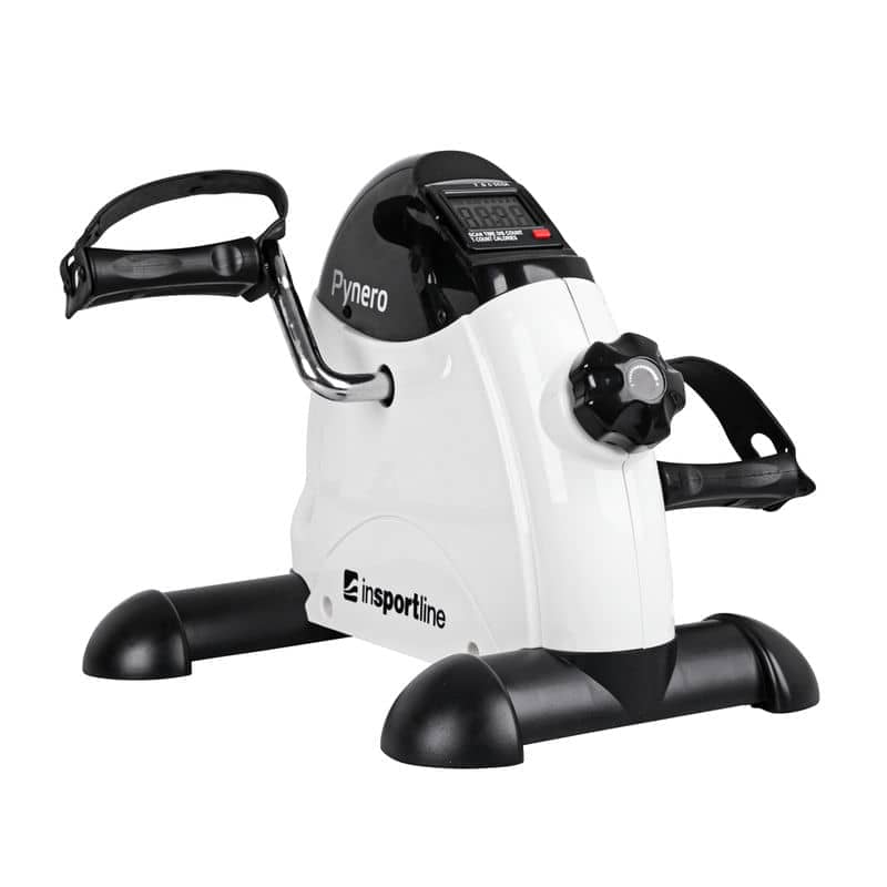 Міні-велотренажер Insportline Pynero - це невеликий і простий у використанні тренажер, який дозволяє тренувати руки і ноги. Крім педалювання, ви також можете задіяти руки, плечі і верхню частину спини. Однокнопочний комп'ютер показує наступні дані тренування: калорії, обороти або час. Ви можете крутити педалі як вперед, так і назад, задіюючи різні групи м'язів. Напрямок обертання педалей не впливає на дані тренування.