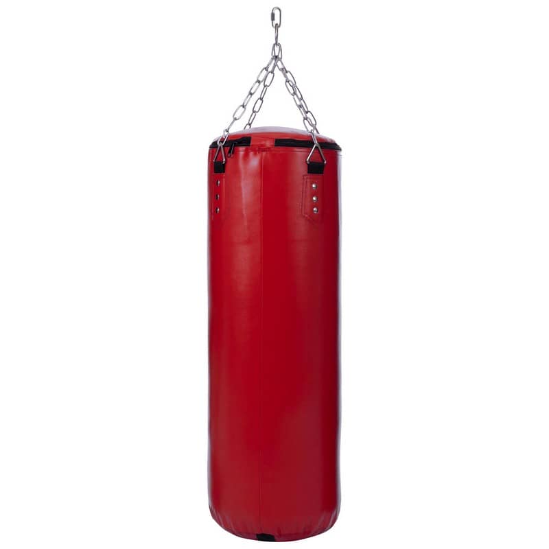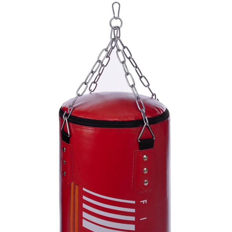 Кріпиться мішок за допомогою підвісної конструкції: в комплект входить чотирипроменева ланцюгова система з карабіном та укріплене кільце. Це забезпечує просту й надійну установку. Металеві елементи мають захисне покриття, що запобігає корозії, а високоякісно прошите вушко гарантує довгий строк служби навіть при інтенсивному навантаженні.
