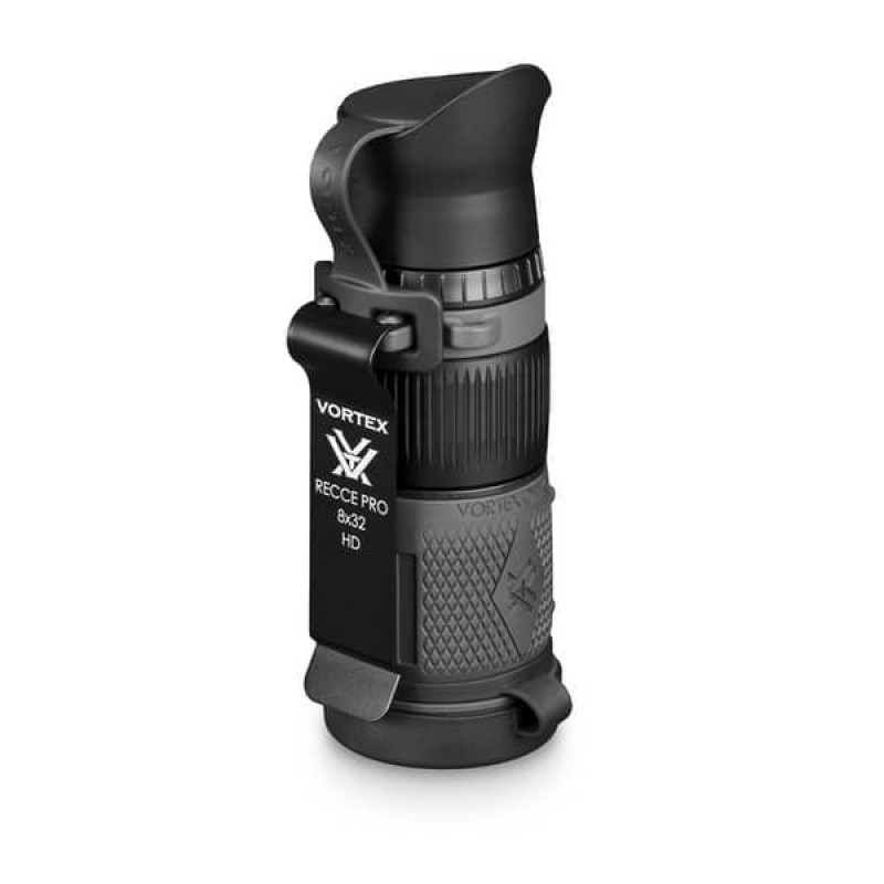 Монокуляр Vortex Recce Pro HD 8x32 R/T поєднує високу якість оптики в компактному корпусі і спеціалізований для виконання тактичних завдань. Монокуляр має об'єктив з низькодисперсного скла з гідрофобним, стійким до подряпин покриттям, всі оптичні поверхні покриті спеціальним широкосмуговим багатошаровим просвітленням, що відносить даний прилад до оптики преміум класу. Корпус одягнений в гумове покриття спеціального складу, що володіє високим ступенем жорсткості і зносостійкості. Запатентована далекомірна сітка дозволяє точно вимірювати відстані і розміри предметів. Монокуляр надійно захищений від проникнення вологи, запотівання та механічних пошкоджень. Монокуляр оснащений м'яким наочником, що запобігає бічне засвічення, жорсткої сталевої кліпсою і наднадійним чохлом з матеріалу Cordura 1000D