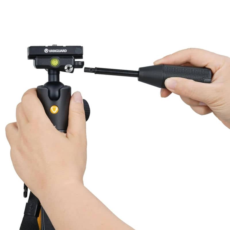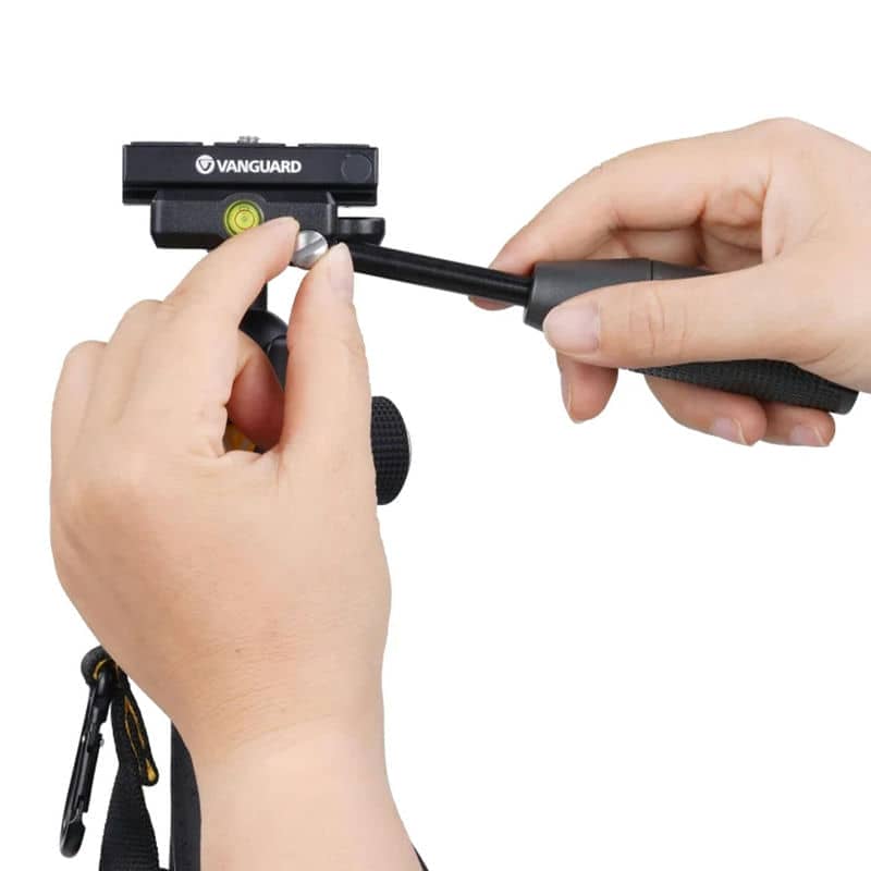 Якщо необхідно зменшити вагу монопода - досить зняти штативну головку і використовувати монопод без неї, закріплюючи обладнання на наявне стандартне різьблення чверть дюйма. Хорошим тоном для компанії Vanguard стала турбота про зручність і задоволення користувача. Штатив оснащений м'яким легким темляком на руку і карабіном, які дозволяють швидко змінювати локацію і переносити монопод в нове місце зйомки і спостережень. Також монопод має каучукову накладку на верхню секцію для зручності утримування, і гумову кришку, що приховує гвинт платформи монопода.