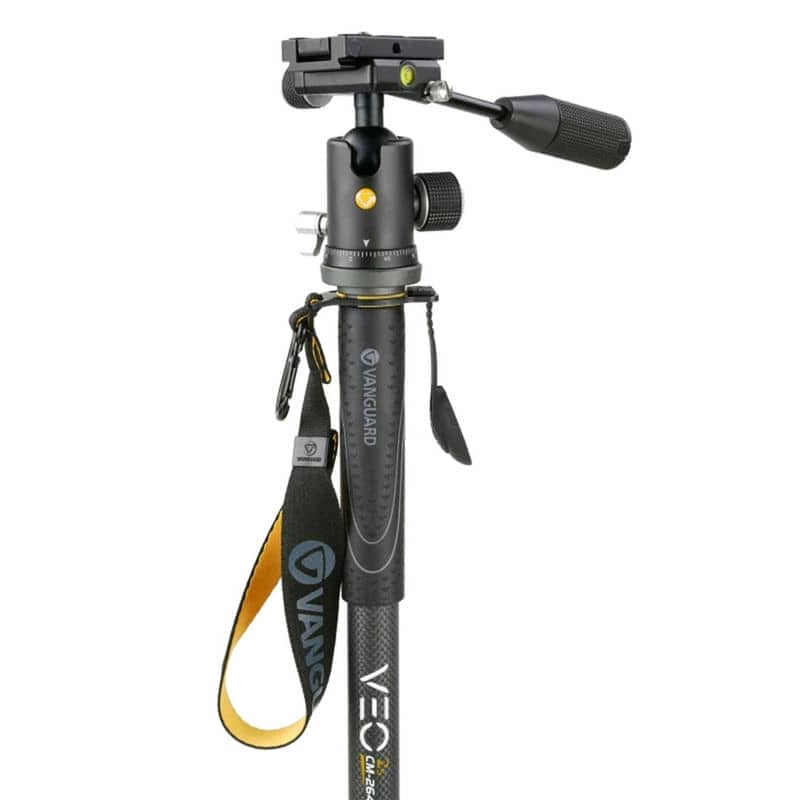 Vanguard VEO 2S CM-264TBP - це чотирьохсекційний карбоновий монопод, який став набагато більш універсальним, завдяки комплектації кулястою штативною головкою VEO 2 BP-120, та здатний нести навантаження до 12 кг. Крім швидкості і зручності вибору позиції для вдалого кадру, дана штативна головка також забезпечує значну зручність для панорамування і відеозйомки завдяки додатковому фрикційному фіксатору і телескопічнії ручці. Головка, в свою чергу, оснащена подовженою штативною платформою стандарту Arca-Swiss.