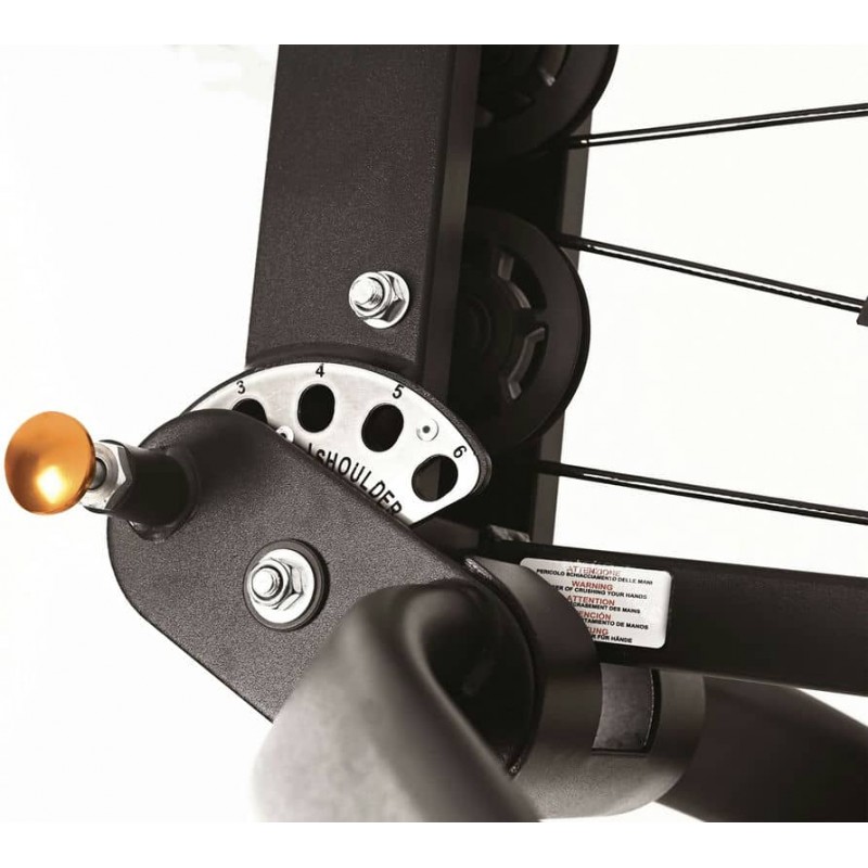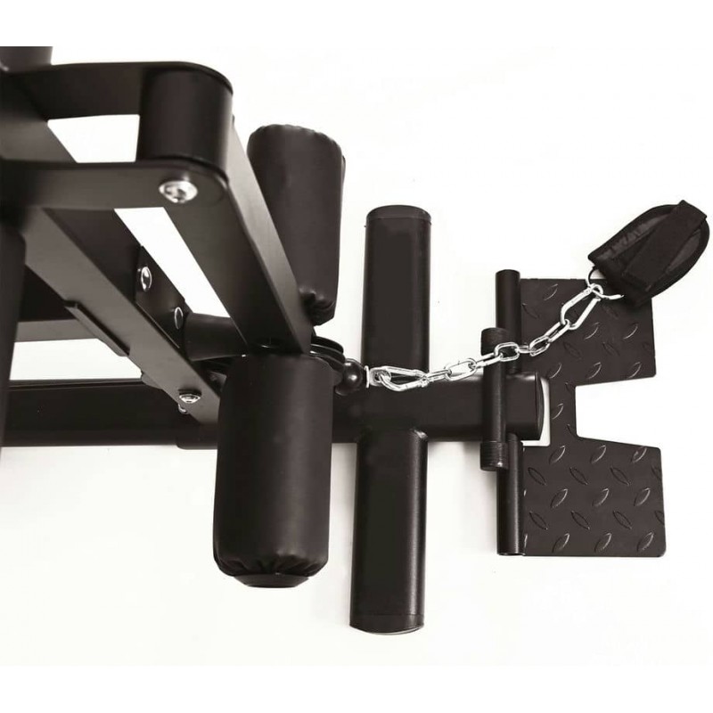 - В комплекті широка ручка для тяги, пряма ручка для тяги, гнучка ручка для тяги, дві регульовані ручки для тяги, лямка для ноги.