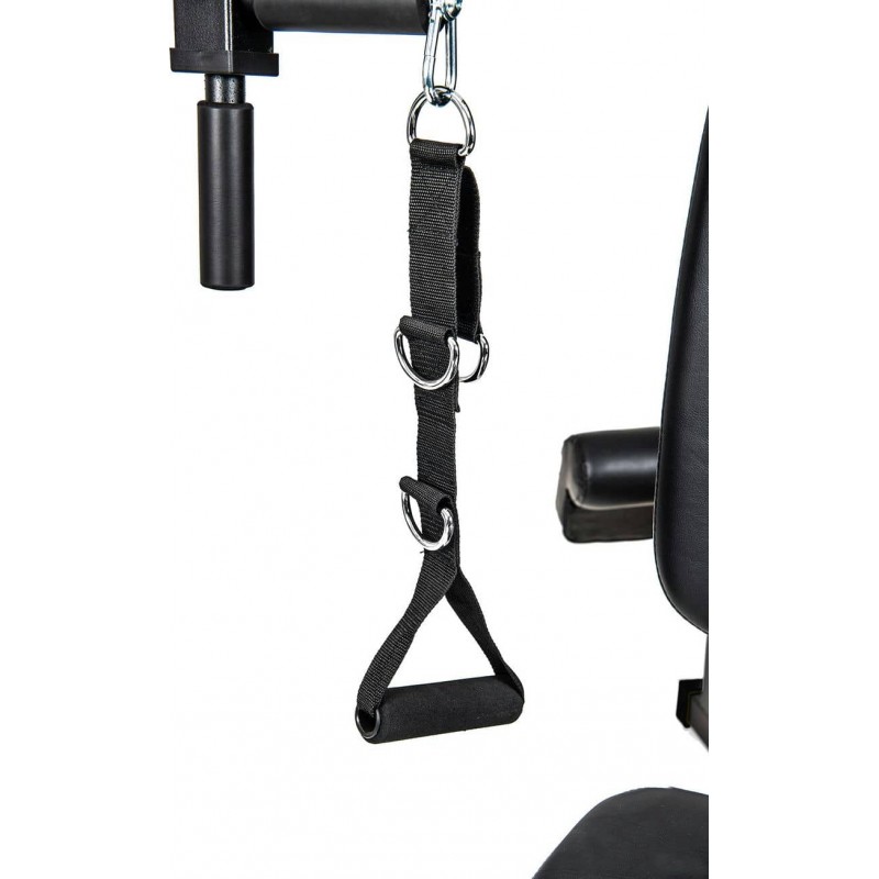 - В комплекті широка ручка для тяги, пряма ручка для тяги, дві регульовані ручки для тяги, лямка для ноги.