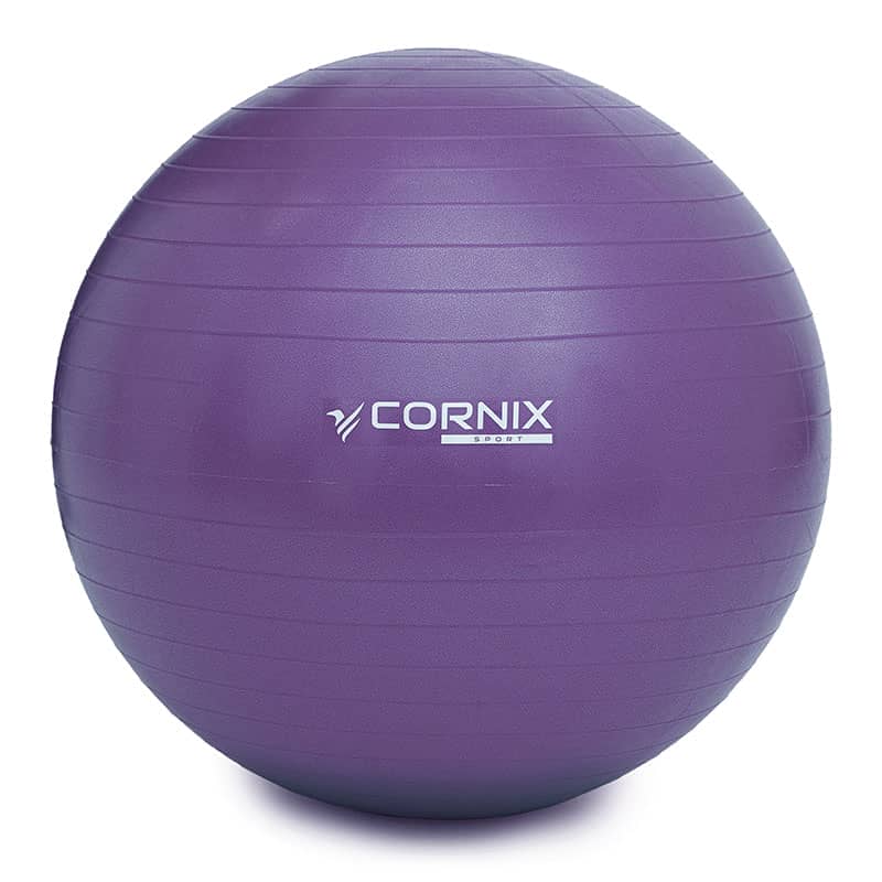 Гімнастичний м'яч Cornix виконаний з високоякісного матеріалу ПВХ, розрахований на максимальне навантаження 150 кг. На додаток, інвентар має систему Anti-Burst, яка запобігатиме розриву м'яча при механічному пошкодженні. Його поверхня має протиковзкі властивості, що робить вправи з фітболом не тільки ефективними, але і безпечними. У комплекті передбачено насос для швидкого накачування.