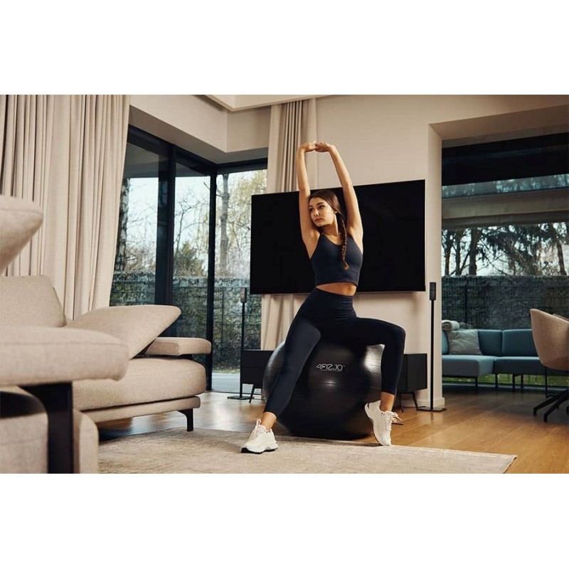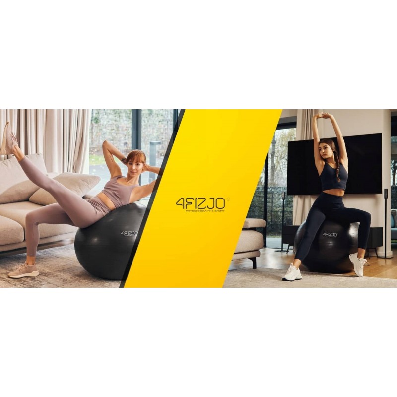 М'яч для фітнесу від 4Fizjo є преміальним продуктом, тому виконаний з матеріалу ПВХ найвищої якості, він не токсичний та не викликає алергічних реакцій. Ще однією його перевагою є наявність системи Anti-Burst, яка захищає виріб від розриву в разі пошкодження. Поверхня м'яча нековзка та приємна на дотик. У комплекті поставки передбачений насос із системою Push and Pull, що дозволяє накачувати м'яч удвічі швидше. Продукт отримав схвальні відгуки серед тренерів та фізіотерапевтів, тому рекомендується до використання як в домашніх, так і в комерційних цілях, в тому числі при проходженні реабілітації.